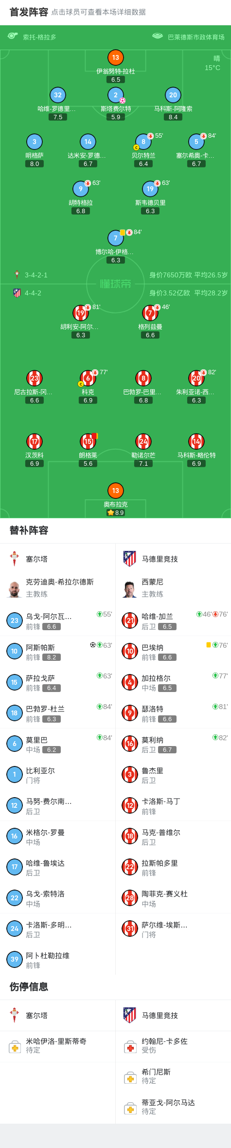 第69分钟,阿斯帕斯在禁区内补射破门,塞尔塔1-1扳平马竞